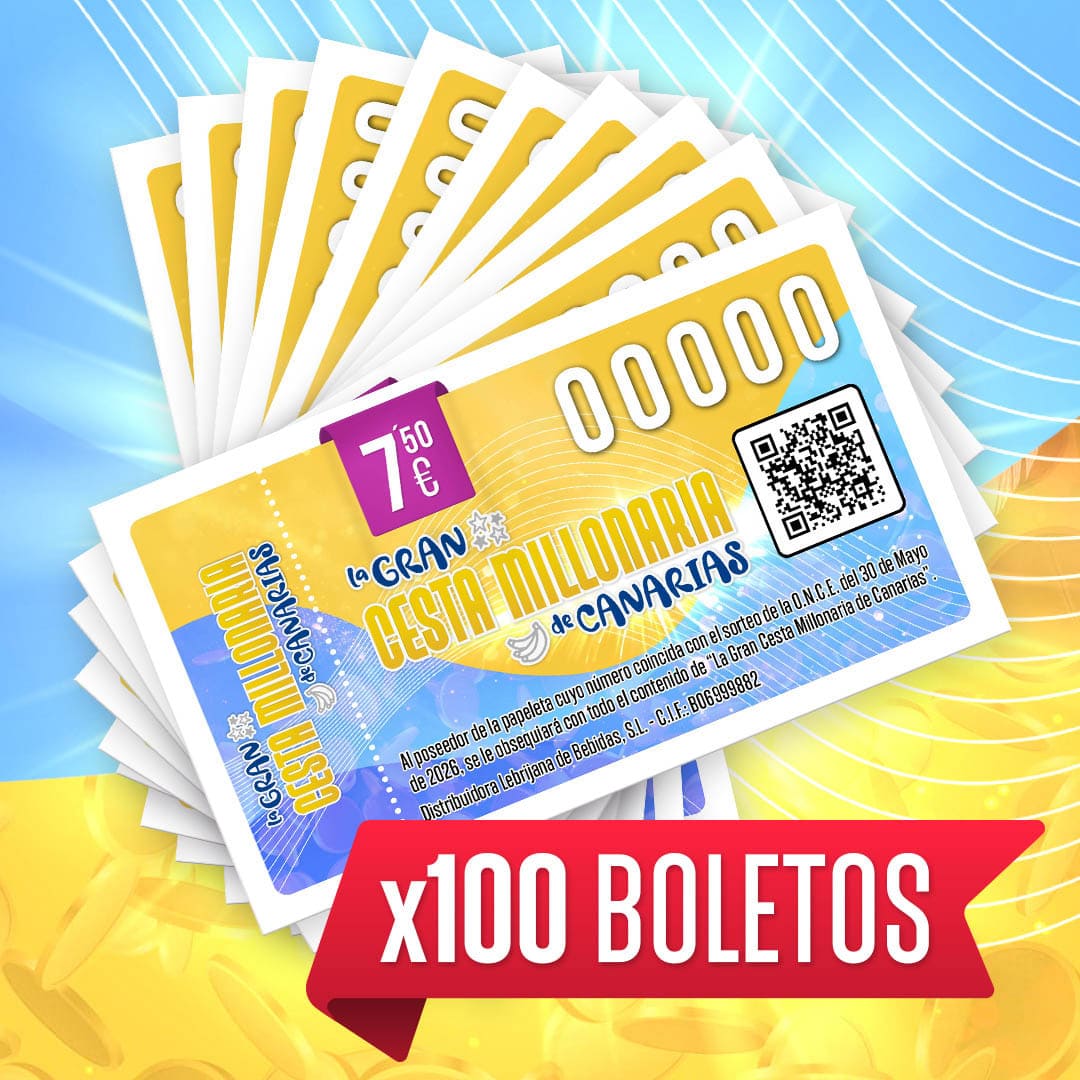 Este lote especial incluye 100 boletos con un descuento exclusivo para que tengas más posibilidades de ganar los increíbles premios que «La Gran Cesta Millonaria de Canarias» tiene preparados.