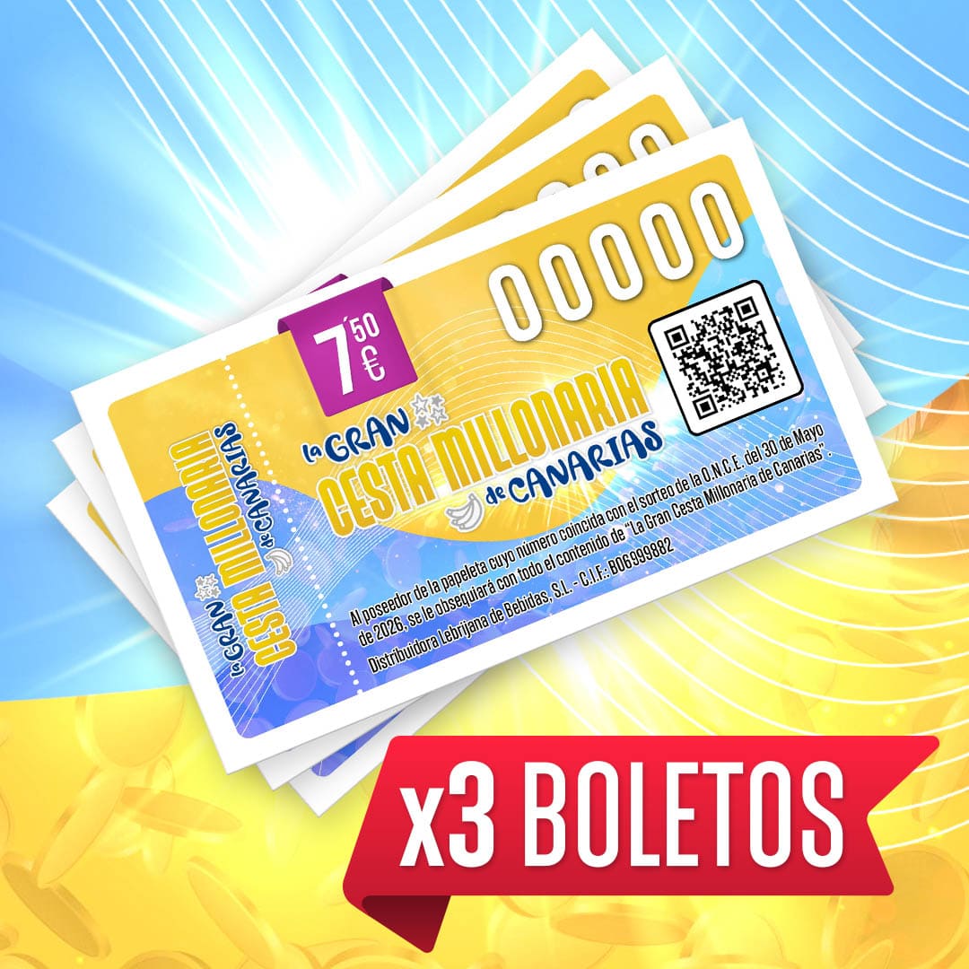 Este lote especial incluye 3 boletos con un descuento exclusivo para que tengas más posibilidades de ganar los increíbles premios que «La Gran Cesta Millonaria de Canarias» tiene preparados.